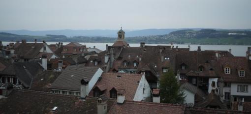 Auf dem Kirchplatz triffst du auf Albert Bitzius, bekannt als Jeremias Gotthelf; er zeigt auf das Pfarrhaus, in dem er geboren wurde (und du wirst diesem später nochmals begegnen!) Geh nun zur roten Mauer, entlang der 12 Grabplatten und alsdann mehr als 48 Stufen himmelwärts. Finde diesen Ausblick!