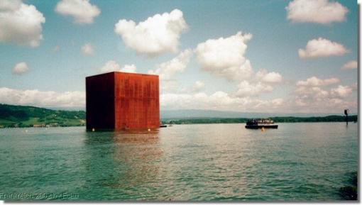 It is one of the nine chapels having been built along the lake. This set-up, called the Arteplage is a creation of Jean Nouvel, famous French architect. Perhaps you have heard of the Monolith, this huge and impressive swimming cube of iron.